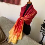 Our 14×72 (medium) scarves are 100% Habotai silk with a light weight and smooth touch. This fabric is what people often call “China silk.” They are light weight with slight sheen to the surface. They are approximately 14×72”, 8mm weight, and have a clean, machine-sewn hem.