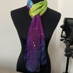 Our 14×72 (medium) scarves are 100% Habotai silk with a light weight and smooth touch. This fabric is what people often call “China silk.” They are light weight with slight sheen to the surface. They are approximately 14×72”, 8mm weight, and have a clean, machine-sewn hem.